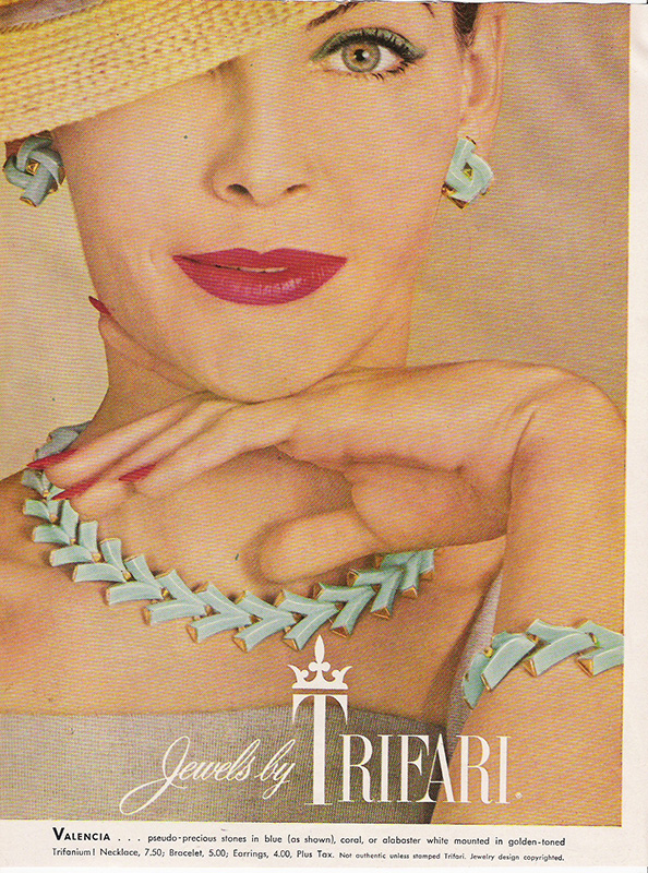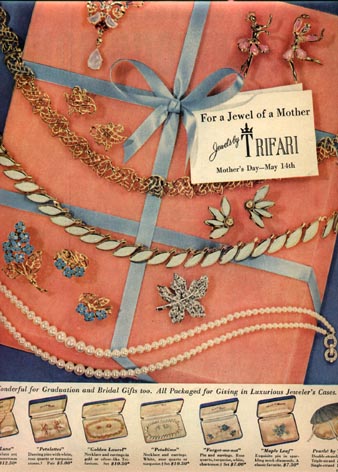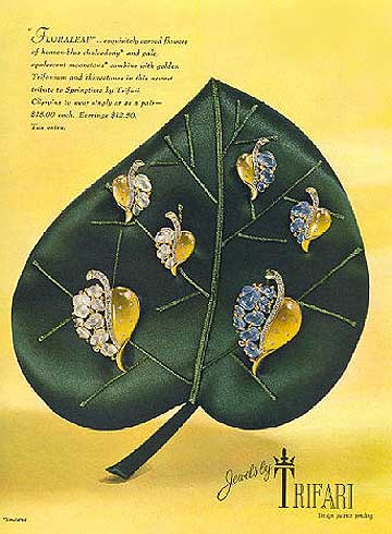 Использование уже известных, но более тщательно обработанных исходных материалов служило гарантией успеха изделий от Трифари (Trifari), так как отношение к ювелирным украшениям в все времена было трепетно. Самая популярная коллекция - это "Джелли Белли", а так же броши в виде крон (особенно выпущенные под руководством Альфреда Филиппа в 1940-х гг.) и украшения патриотической тематики, включая американский флаг и броши в виде орлов, прославляющие американские Вооруженные силы времен Второй мировой войны. И сегодня компания остается одной из самых престижных по производству украшений.