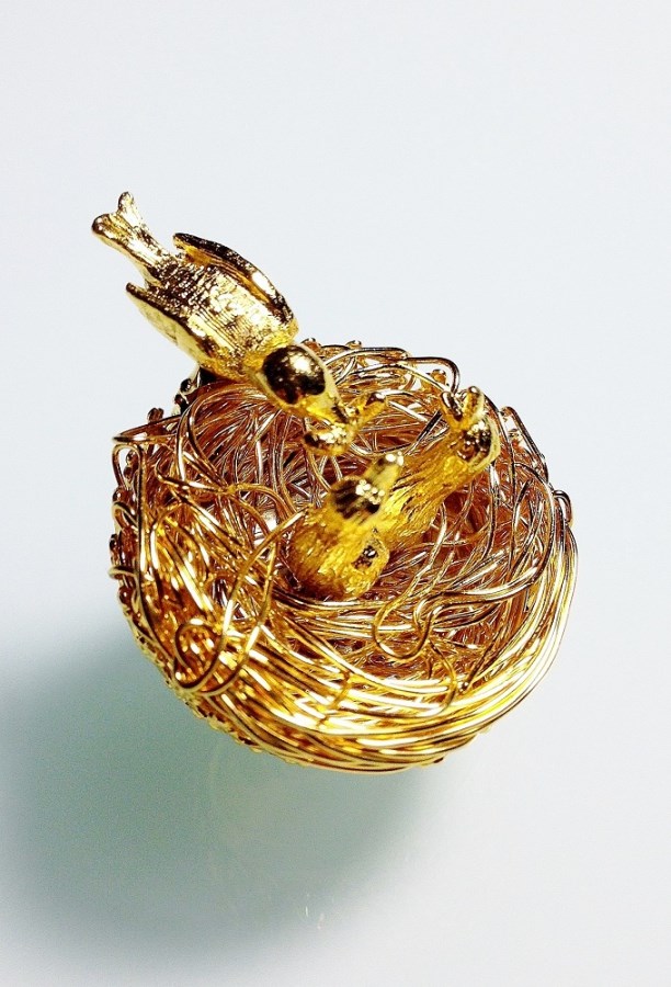 Винтажная брошь "Гнездо с двумя птенцами" Jeanne